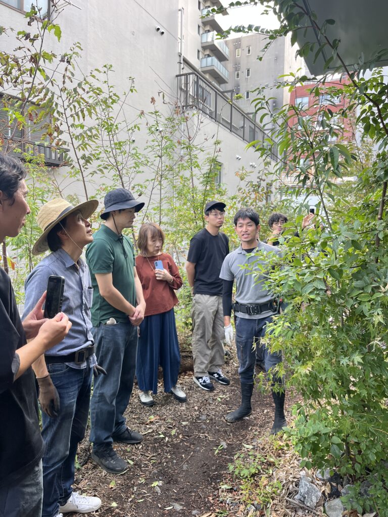 参加者でご近所お住まいの方 Kさん:20年来の住民です。武蔵小山にはこれからタワーマンションが3棟も建つ計画があります。そのような中でここが建設されている時から気になっていて、できあがったらこのような森ができあがり、誇りになりました。志を持ったオーナーが小さなことからできることを市民に示す機会として、サポーターズクラブができてとてもハッピーです。