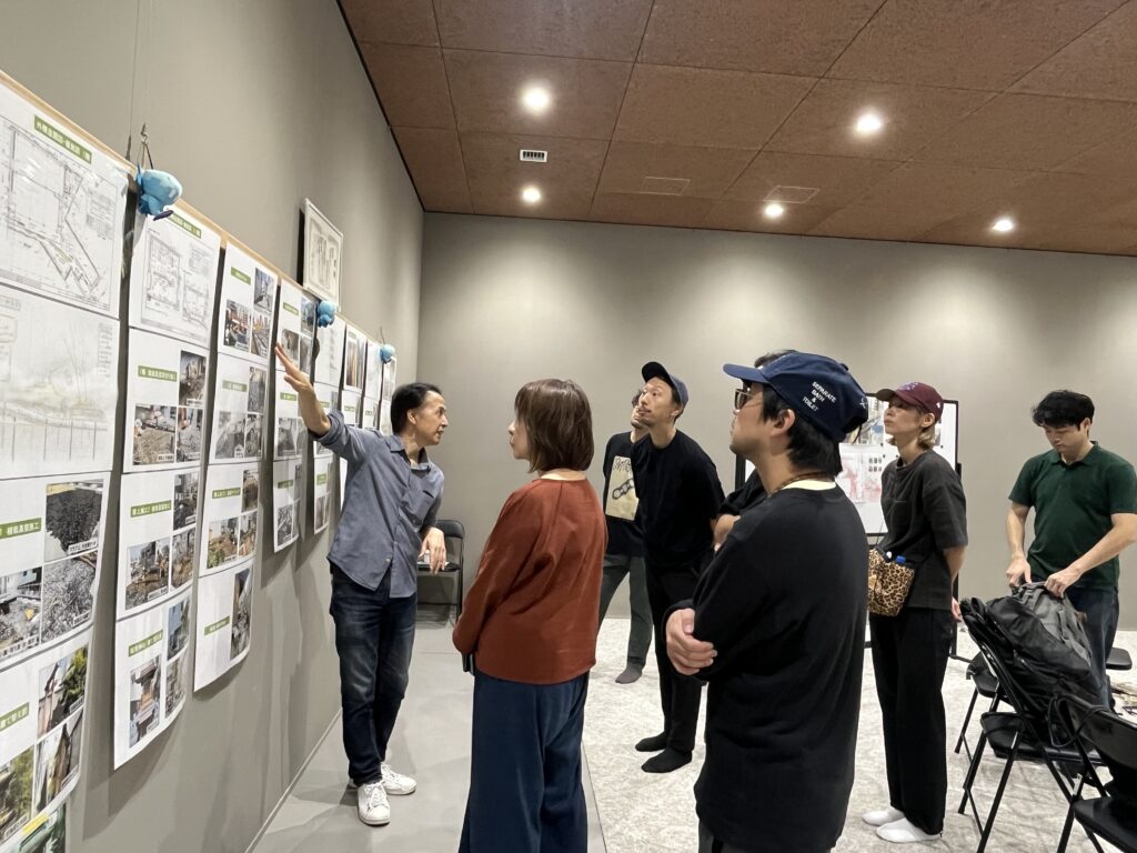 プレゼンの前に、この建物が建設されたプロセスを解説。みなさんからは防水、耐荷重をはじめ、下地のつくりかたについて次々質問が飛び出しました。