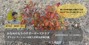 かなめのもりの屋上をもっと楽しんでいただくために、SCメンバーと11月15日に参加していただいた方で、次回のイベント日、12月20日に屋上お茶会を一緒に企画しましょう。どんなお茶をどんな風に楽しむか? みなさんでアイディアを持ち寄ってくださいね。